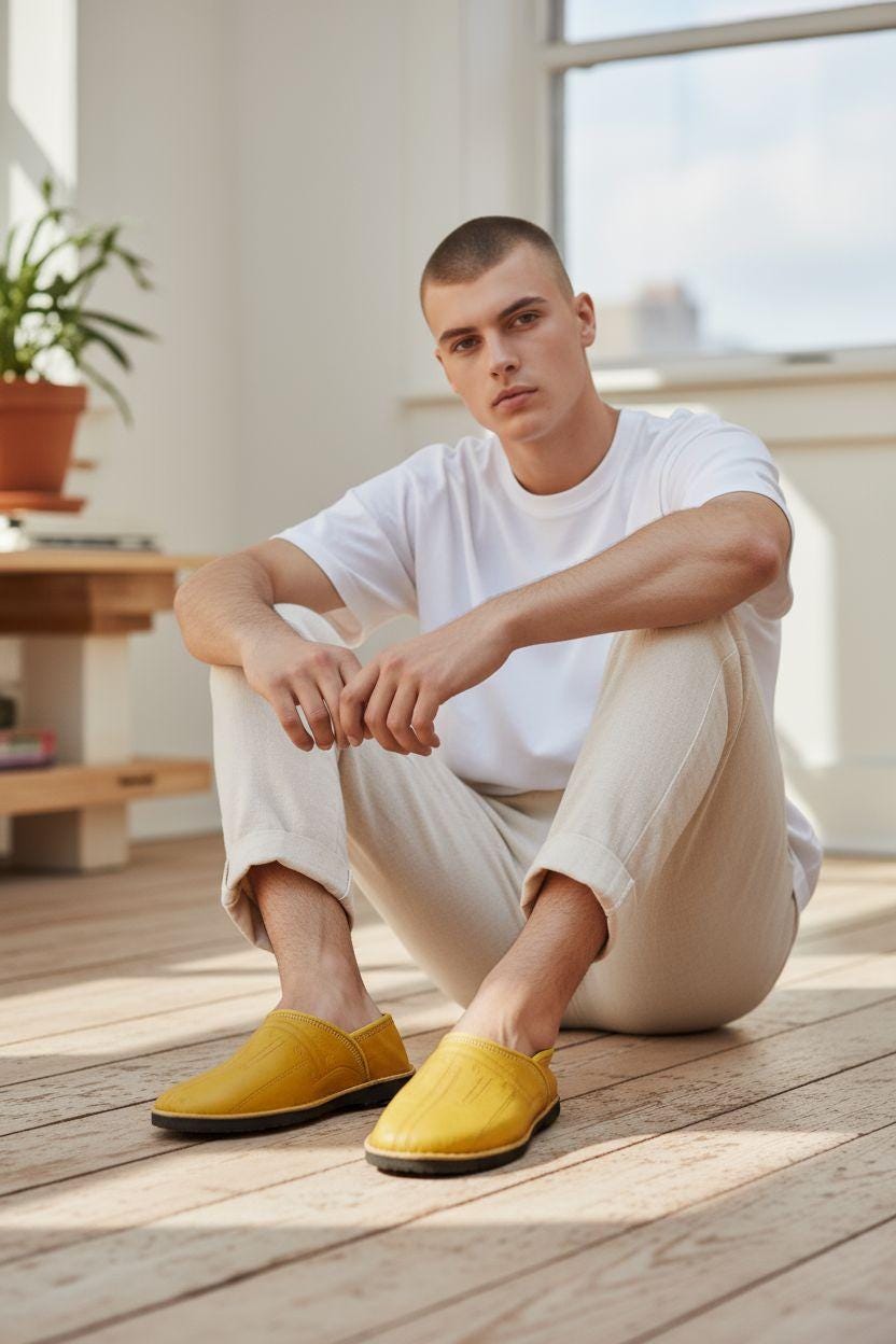 Experience the elegance and comfort of handmade leather slippers with foldable heels, crafted entirely in the purest Moroccan Berber tradition.